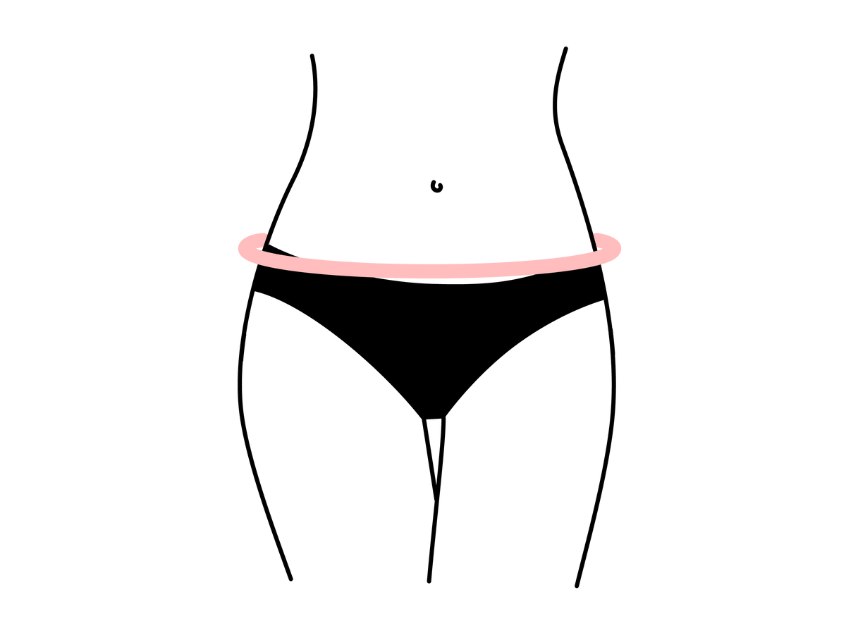 Tenez vous droit(e), pieds serrés et placez le mètre ruban autour de votre taille, là où le haut de votre culotte se pose en général et le tour est joué.